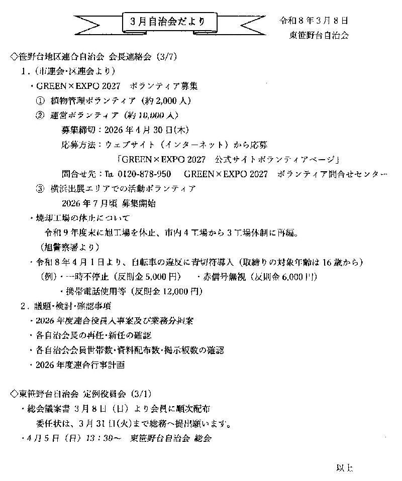 ●2月自治会だより